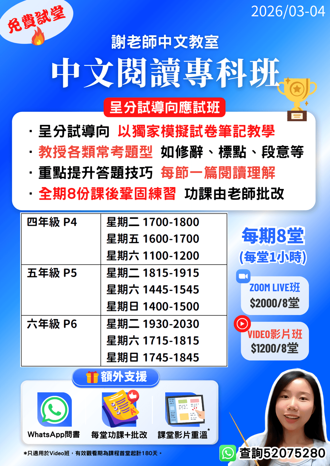 課後WhatsApp問書服務*(價值$680/月)
